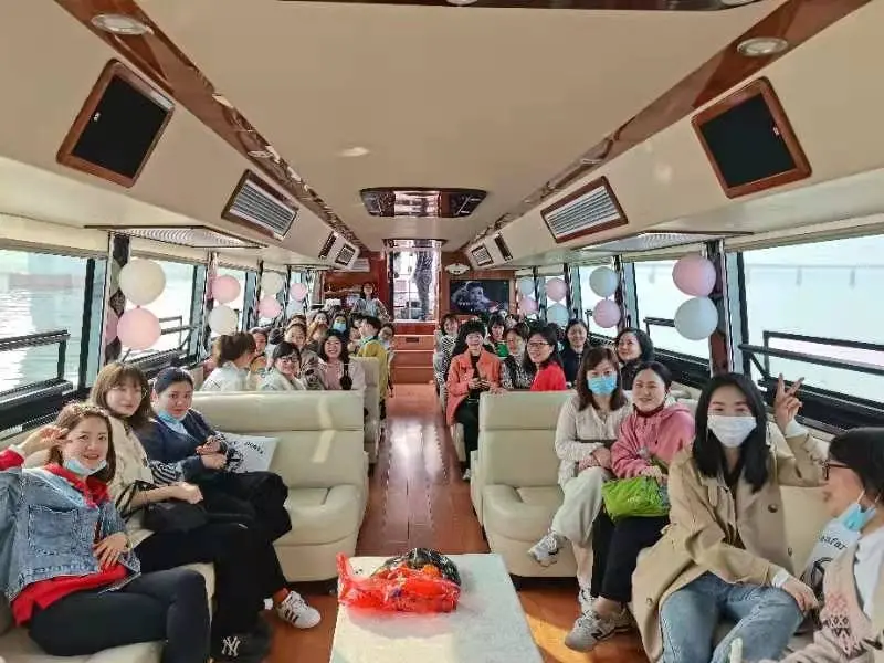 公司女神们热热闹闹从蔡家煲码头坐游艇出发